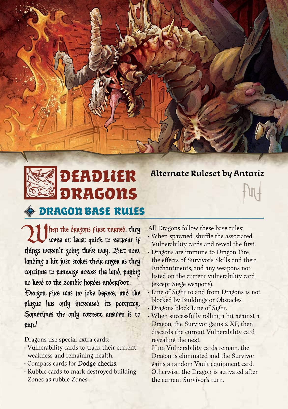This alternate ruleset guarantees there will be more spectacle than hitting a predictable target with a Ballista and watching it fly away – Dragons shouldn’t retreat, they should retaliate!