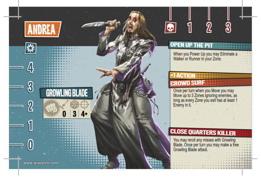Presented here are rules for playing the 5 Lacuna Coil band members from the Kickstarter exclusive version of White Death in the Superhero Zombicide game system. I have included rules for playing as the heavy metal heroes and against them as the hungry dead. A couple of reminders before we dive in.
